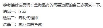 参考推荐选品词:蓝海品有的需要资源的自己多研究一下。选品一:ccaa选品二:专利代理师选品三:执业兽医考试