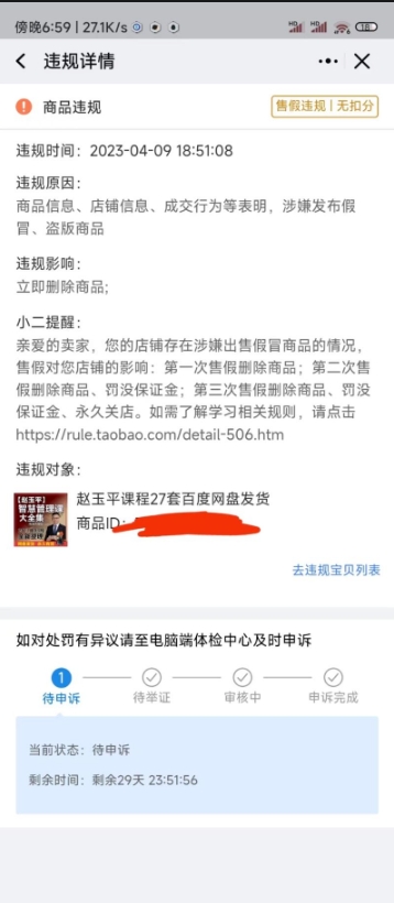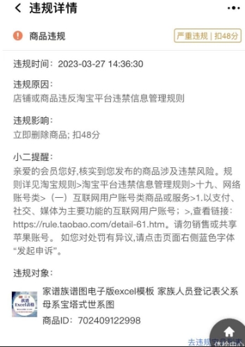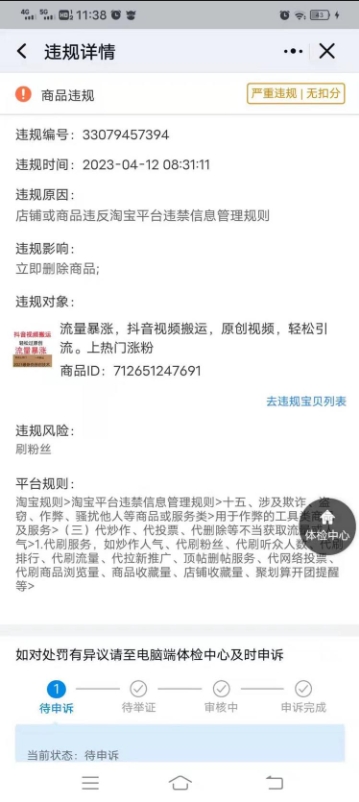 2个违规链接申诉成功我有一个品自然单多,我看卖的不错就去淘宝找这个宝贝的不同标题准备裂变上品,没多久上传的就被判违规,涉及售卖账号,第二天销量好的品也被判违规下...