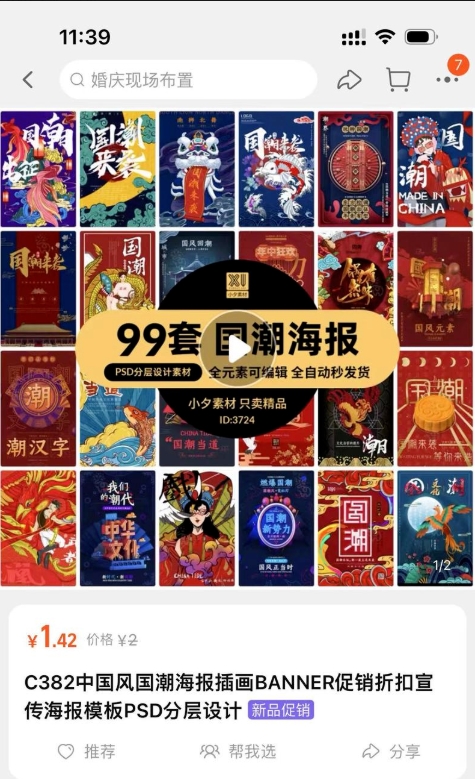 C382中国风国潮海报插画BANNER促销折扣宣传海报模板PSD分层设计国潮插画类的,一般是素材店铺比如:小夕素材,T500定制这种。数量比较多,分辨不了,建议...