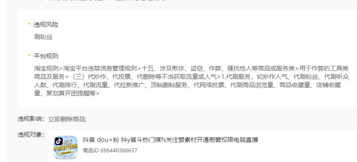 关于抖音dou+开橱窗违规