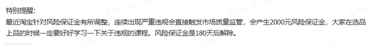 特别提醒:最近淘宝针对风险保证金有所调整,连续出现严重违规会直接触发市场质量监管,会产生2000元风险保证金,大家在选品上品的时候一定要好好学习一下关于违规的课...