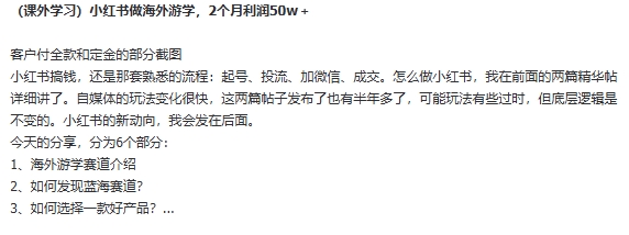 (课外学习)小红书做海外游学,2个月利润50w+