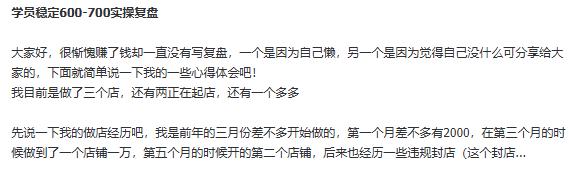 大家好,很惭愧赚了钱却一直没有写复盘,一个是因为自己懒,另一个是因为觉得自己没什么可分享给大家的,下面就简单说一下我的一些心得体会吧!我目前是做了三个店,还有两...