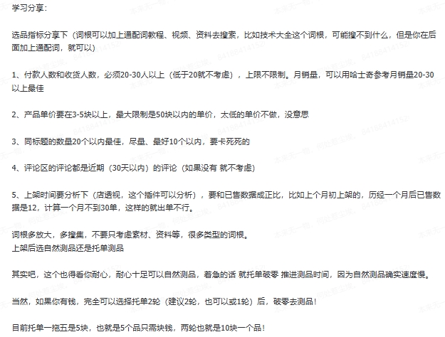 学习分享:选品指标分享下(词根可以加上通配词教程、视频、资料去搜索,比如技术大全这个词根,可能搜不到什么,但是你在后面加上通配词,就可以)1、付款人数和收货人数...