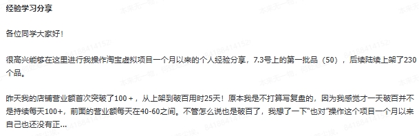 各位同学大家好!很高兴能够在这里进行我操作淘宝虚拟项目一个月以来的个人经验分享,7.3号上的第一批品(50),后续陆续上架了230个品。昨天我的店铺营业额首次突...