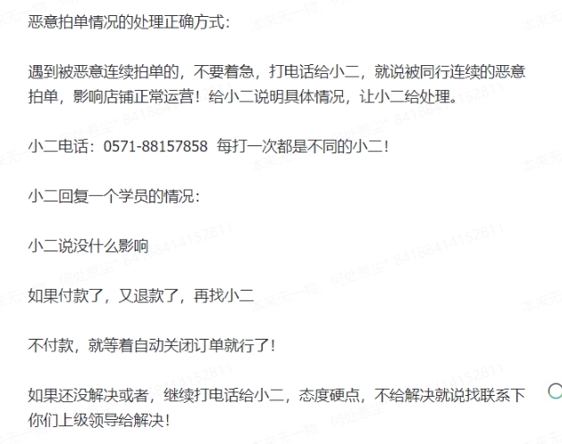 恶意拍单处理方式: