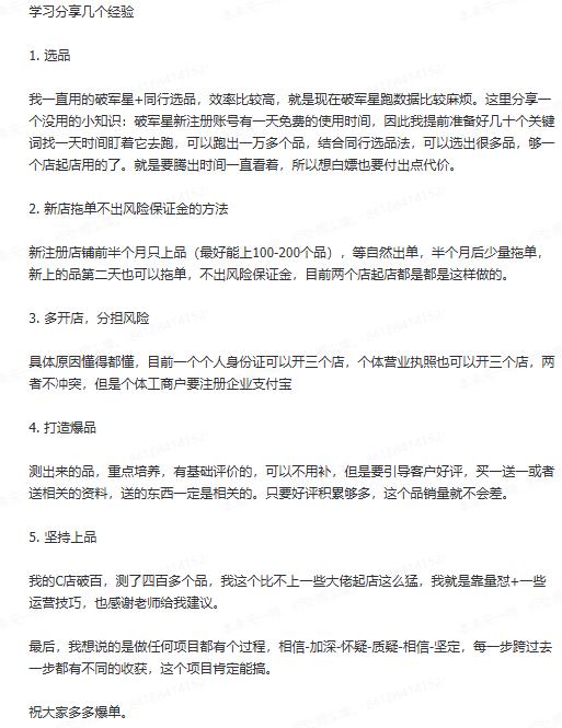 学习分享几个经验1. 选品我一直用的破军星+同行选品,效率比较高,就是现在破军星跑数据比较麻烦。这里分享一个没用的小知识:破军星新注册账号有一天免费的使用时间,...